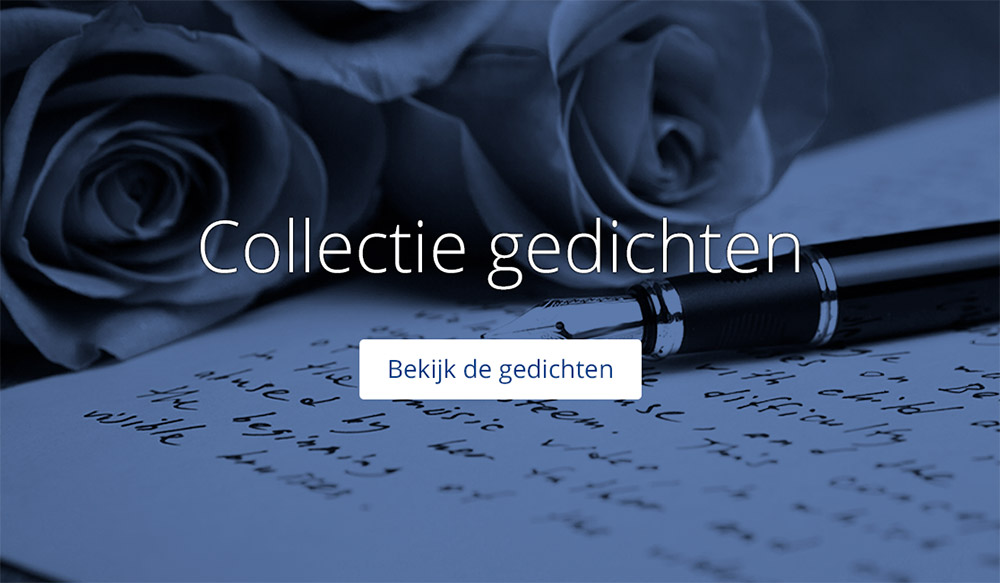 Met een mooi gedicht kunt u het karakter van u of van uw dierbare laten spreken. Gedichten worden steeds vaker gebruikt op een kaart en daarom hebben wij enkele gedichten voor uw uitgezocht die wellicht ter inspiratie kunnen dienen bij het kiezen van het juiste gedicht.